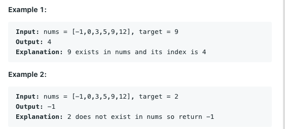 - 오름차순으로 정렬된 배열과 찾아야 하는 정수, O(logn)의 시간복잡도를 통해 Binary search를 통해 문제를 해결해야 함을 알 수 있다.