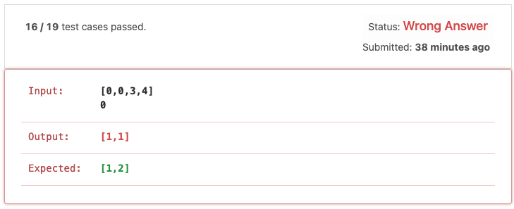- 그림과 같이 입력이 주어졌을 때가 오답이 나올 수 있는 경우이다. 그림의 예시에서 중복 원소를 선택하면 안 되기 때문에 정답은 [1, 2]가 되어야 한다. 하지만 작성한 코드는 앞에서부터 순차적으로 원소를 조회하기 때문에 선택한 원소를 제외해주지 않으면 동일한 원소를 선택하게 된다.
