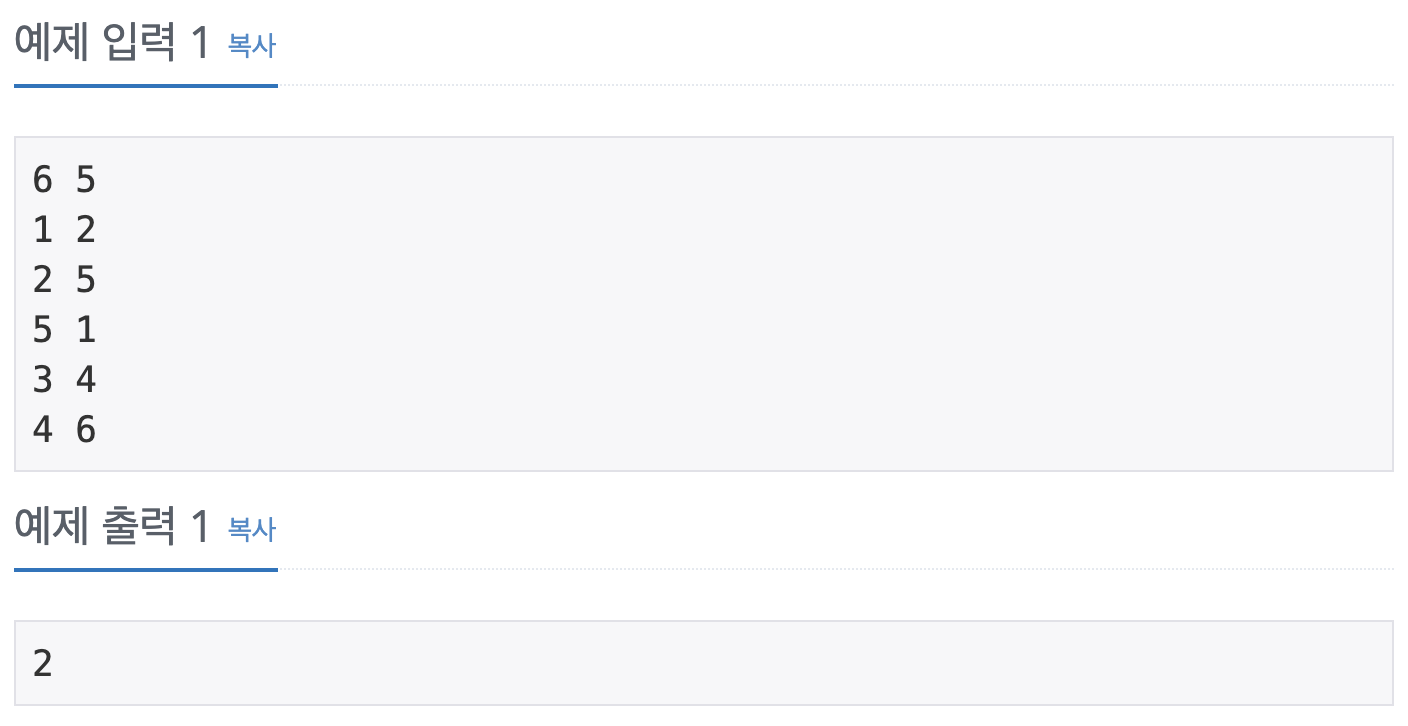 1. 방향 없는 그래프가 주어졌을 때, 연결 요소의 개수를 구하는 프로그램을 작성하시오.