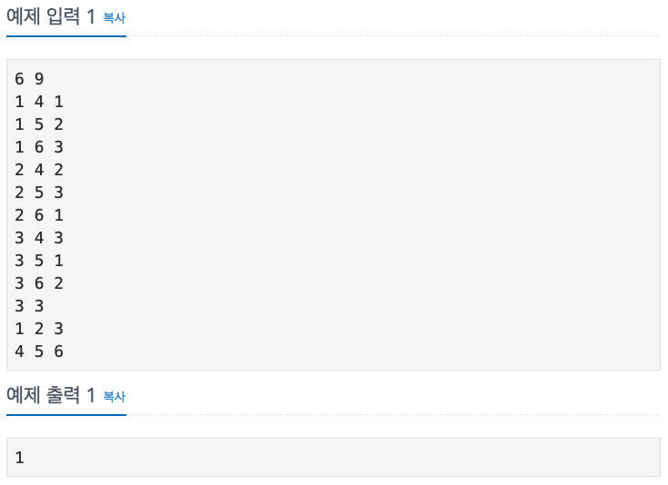 예시 1 :: 주어진 문제에서 집 정점은 1, 2, 3. 편의점 정점은 4, 5, 6으로 주어진다.