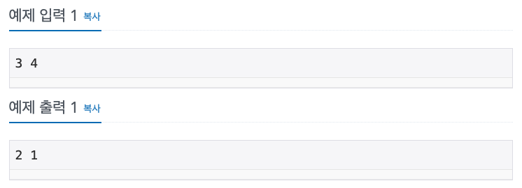 첫째 줄에 두 정수 A, B(1 ≤ A, B ≤ 2,000,000,000)가 주어진다. 잘못된 입력은 주어지지 않는다고 가정한다.