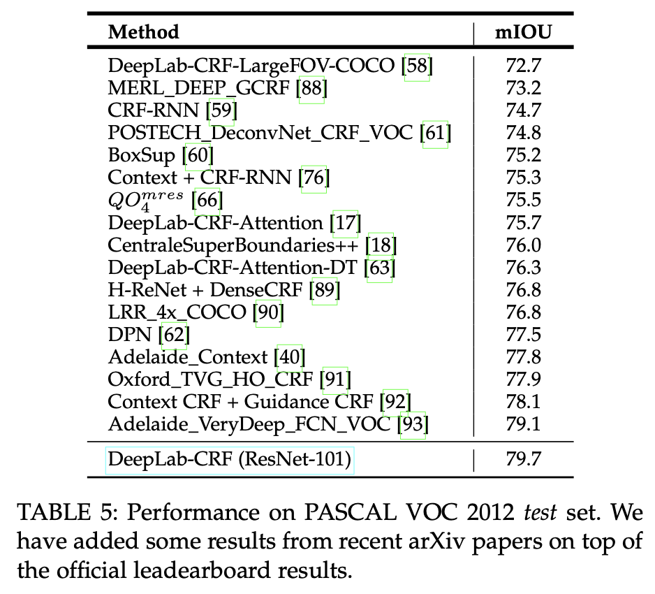 [1] Chen, Liang-Chieh, et al. "Deeplab: Semantic image segmentation with deep convolutional nets, atrous convolution, and fully connected crfs." IEEE transactions on pattern analysis and machine intelligence 40.4 (2017): 834-848.