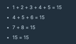 - 문제의 풀이는 간단하다. 1부터 n까지의 수를 순회하며, i는 시작지점을 j는 시작지점으로부터 증가시키며 합을 비교하면 된다.