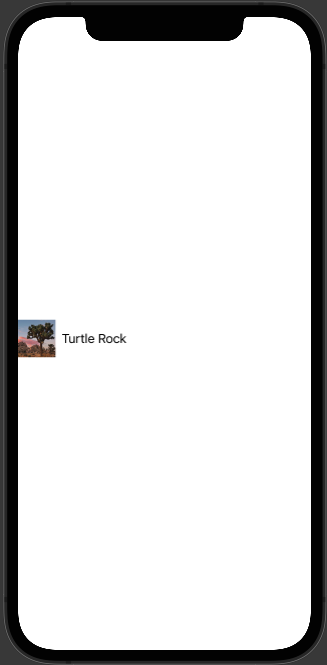 이렇게 landmark를 지정해주면, 다시 Previews를 Xcode 내에서 확인할 수 있다. 이 작업이 끝나고 나면 화면을 구성하면 된다. 불러온 landmark의 이미지와 이름, 그리고 가로 뷰를 제공하는 HStack과 부모 view의 공간을 활용하도록 하는 Spacer를 사용해서 화면을 구성한다. 완성된 코드와 화면은 아래와 같다.