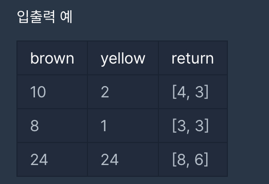 - 문제가 요구하는 카펫의 크기는 다양한 경우 중 최대한 정사각형에 가까운 크기를 반환해야 한다.